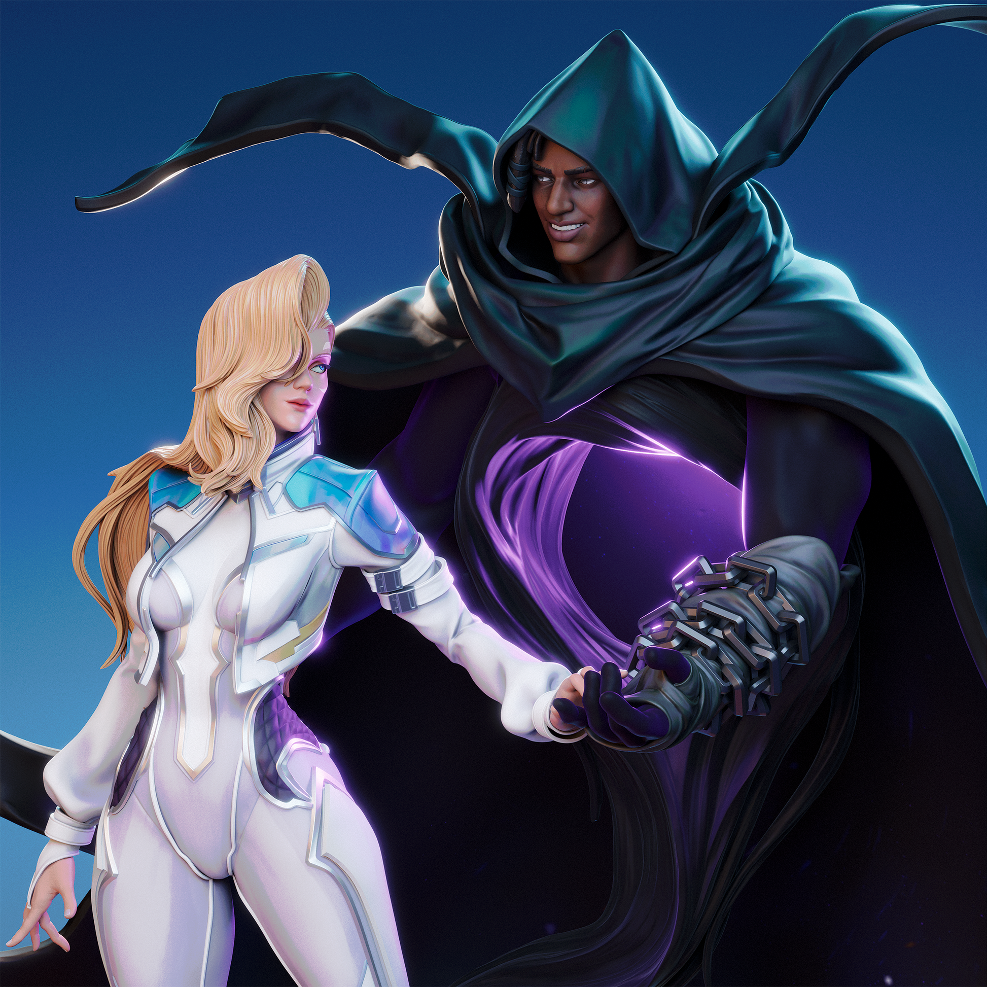 Diorama-style sculpt with Cloak’s swirling shadows and Dagger’s luminous energy