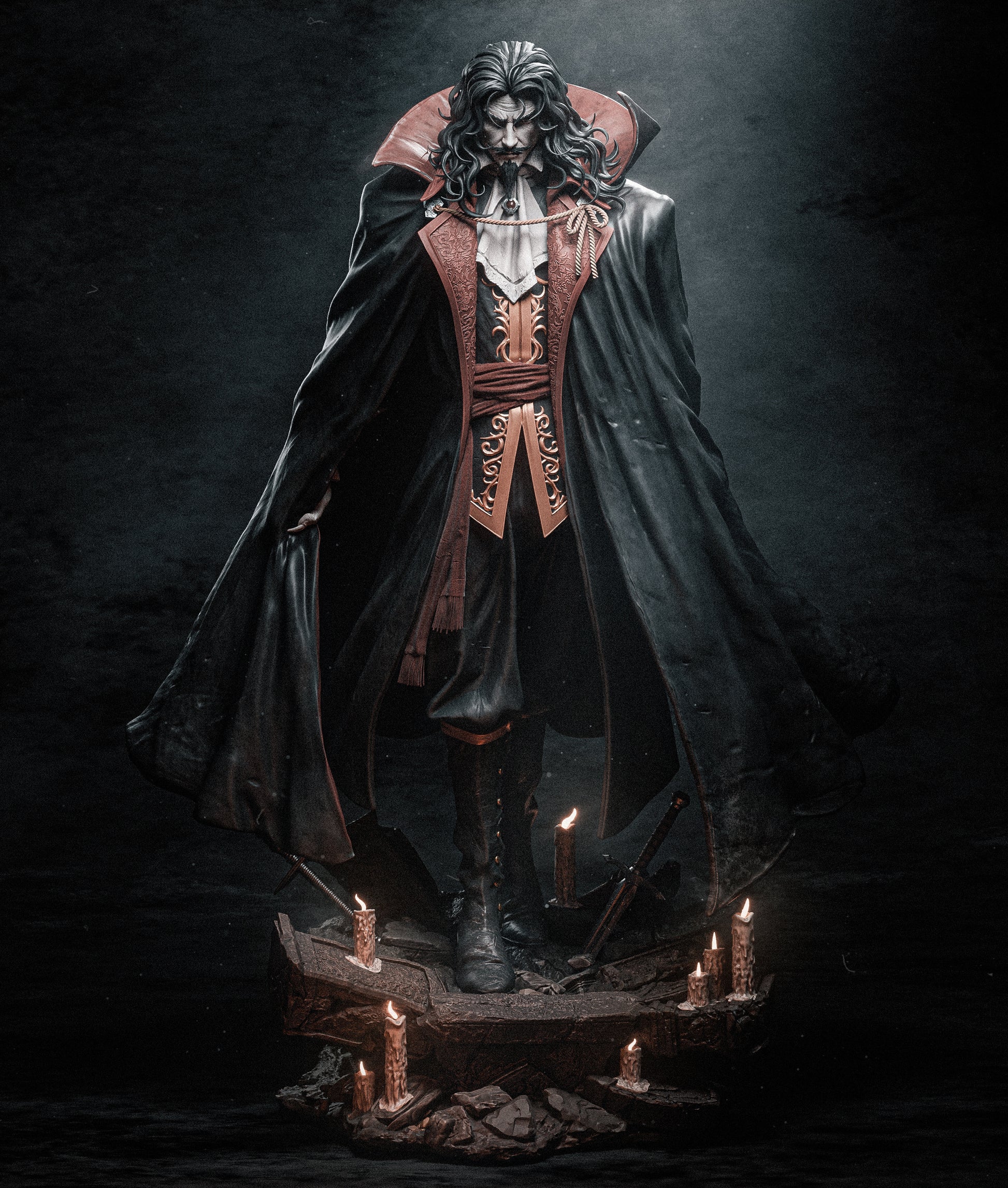 Eternal. Elegant. Unstoppable. This collectible captures Dracula in all his gothic majesty—standing tall, eyes cold, and presence undeniable. Inspired by his appearance in Castlevania, this piece embodies the dark charisma and overwhelming power of the Lord of Vampires.