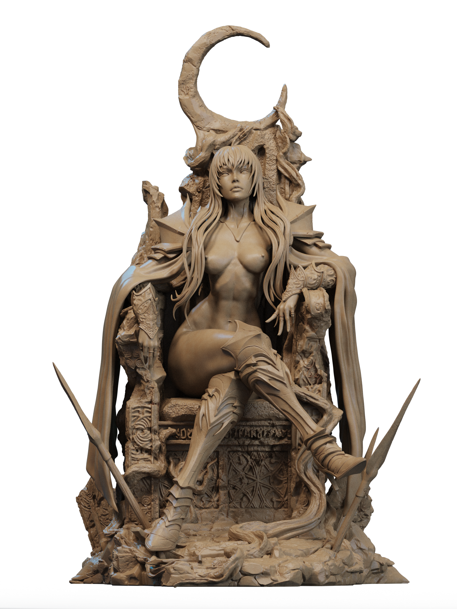 The Underworld’s Grand Matriarch is portrayed in a poised, statuesque moment that emphasizes form, balance, and commanding presence. The sculpt focuses on clean anatomy, strong posture, and a dark, ceremonial throne that reinforces the figure’s mythic authority. Designed for experienced painters and adult collectors, this piece offers a dramatic, art-focused interpretation intended for refined display.